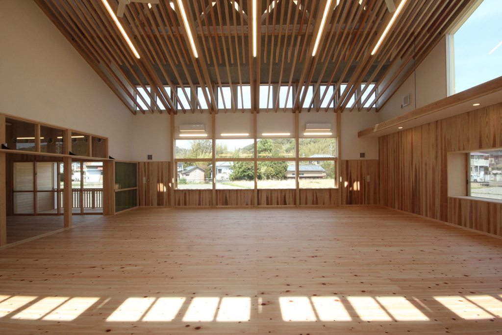 今年の春、島田市に新しい木の保育園が誕生しました。元々同地域にあった保育園の園庭が土砂災害の警戒区域に指定された事と、建物の老朽化や耐震性等の問題が重なり、今回の場所への移転として新しく計画されました。いろいろな問題はあったものの、旧園舎の周辺には小高い山や木々、田んぼなどが広がり、自然と一体となった遊びや体験を軸とした保育が評判の保育園でした。私たちが提案した園舎は“保育理念=園舎づくり”をテーマに、周辺環境が変わっても、旧園舎での思い出や取り組んできた保育を活かせる園舎をつくりたいと考え、リズム体操が出来る広い遊戯室を確保し、保育室などから周辺の山々が見渡せ、園舎と園庭が一体となったプランを提案しました。合わせて、地域の木材をふんだんに使い、仕上げにも木を現した保育園とし、優しく暖かく、そして地域の自然を身近に感じられる内部空間としました。