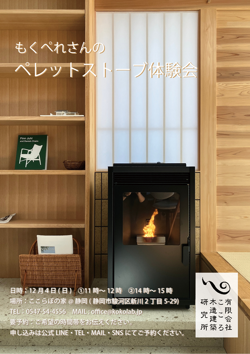 今回のセミナーは、静岡市清水区で長年ペレットストーブを取り扱ってきたもくぺれさんを講師に迎え、ペレットストーブの仕組みや注意点、事例紹介をしたいと思います。当日は実際にペレットストーブに火を入れ、暖かさを体験して頂きたいと思います。